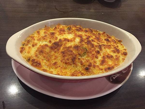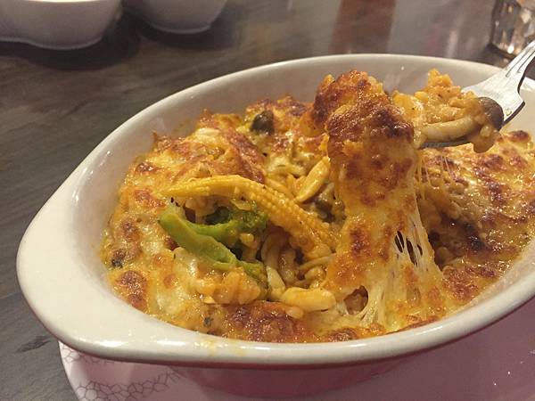 上餐囉!劈山今天吃粉紅醬鮮蔬義大利麵+焗烤 ($150),色香味俱全,看起來很厲害!